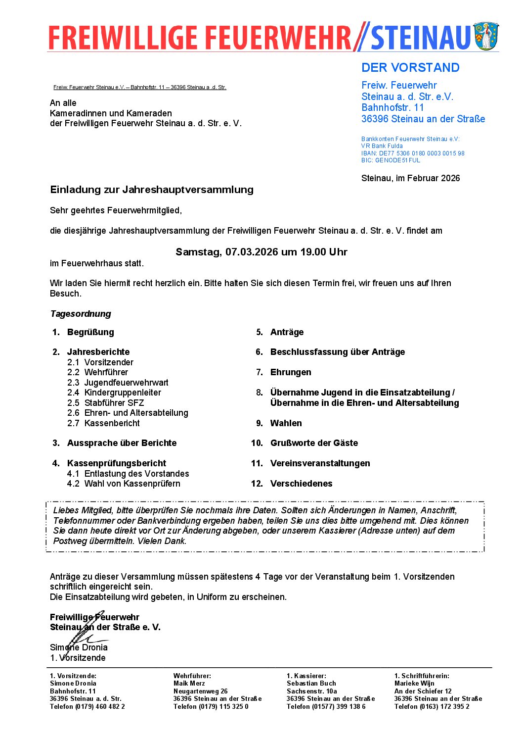 Jahreshauptversammlung am 07.03.2026 – 19 Uhr